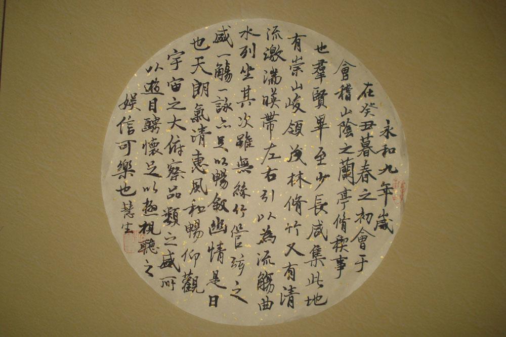 节录了兰亭序开篇精彩的一段,在原作书风的基础上,融入了作者的创作元素,整篇交错辉映,抑扬顿挫,流畅顺美。